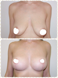 Увеличение груди, Периареолярный доступ (по соску).Импланты Natrelle (McGhan) MF375 высокий прфиль Установка под мыщцу.